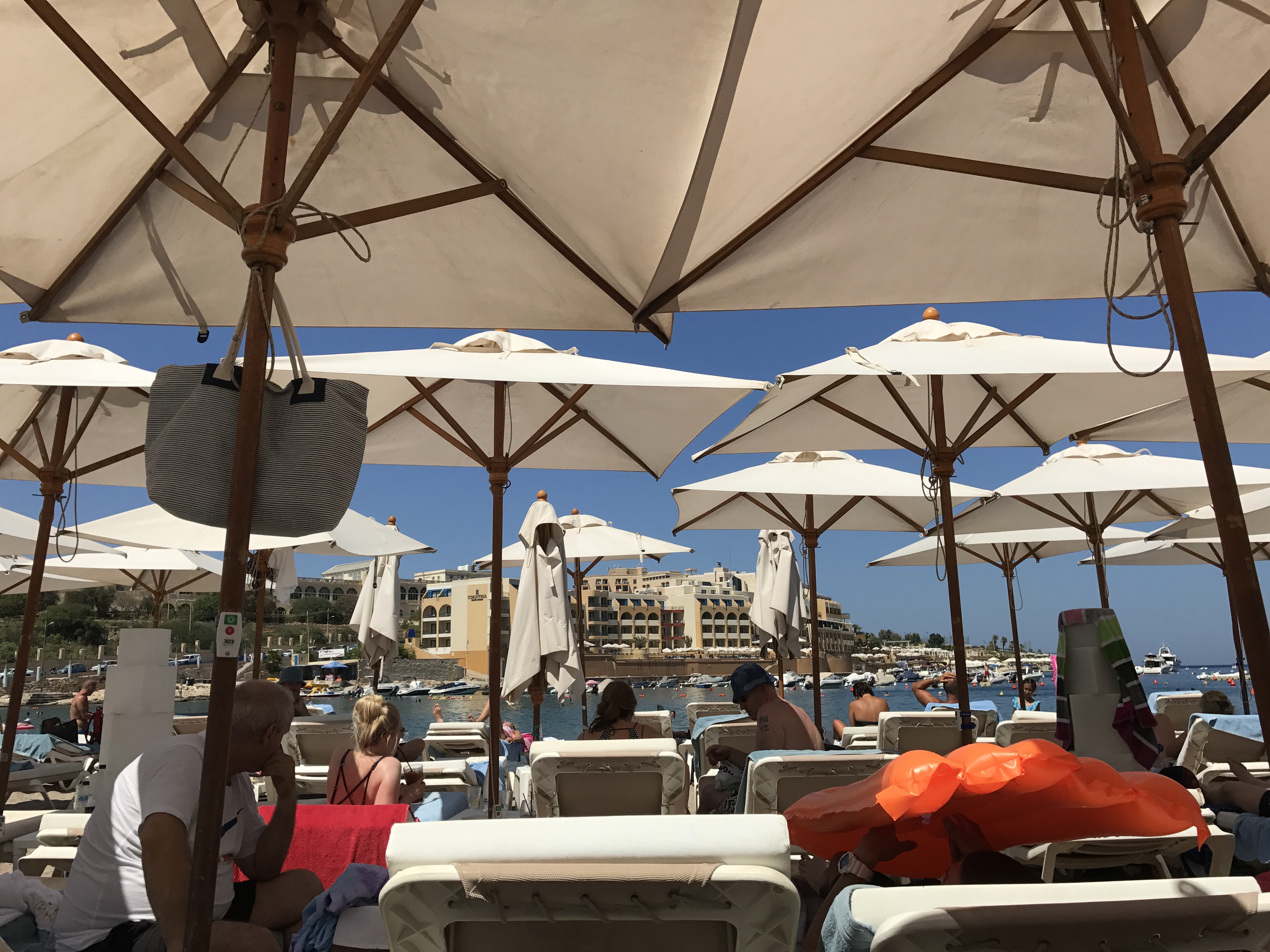 Similar to much of Europe, Malta does not have huge swaths of sandy beaches. There are rocky areas and small spots of sand, like this one from my second hotel. As a Florida girl, I am spoiled with beautiful sandy beaches and decided to forgo the sardine seats and lack of view and went to the pool instead.